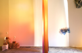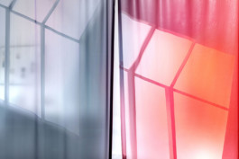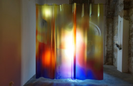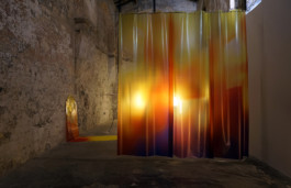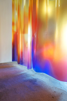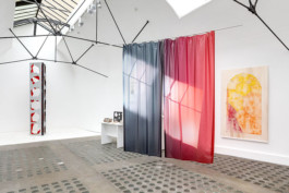 Les pièces Curtain sont crées in situ pour l’espace les accueillant. Ces trompes l’oeil viennent créer un trouble visuel en lien avec l’architecture.