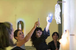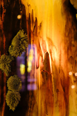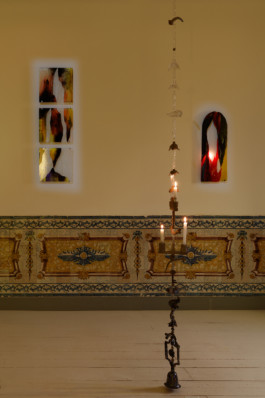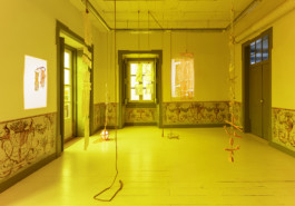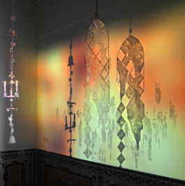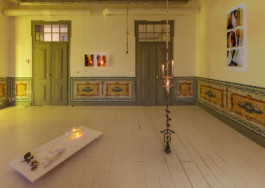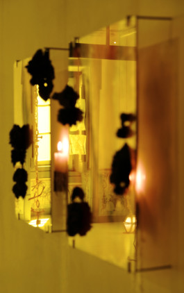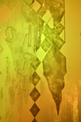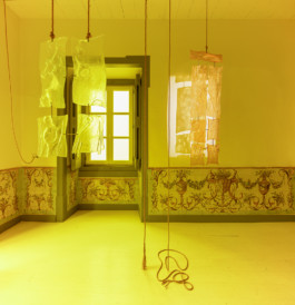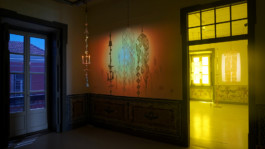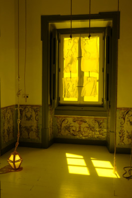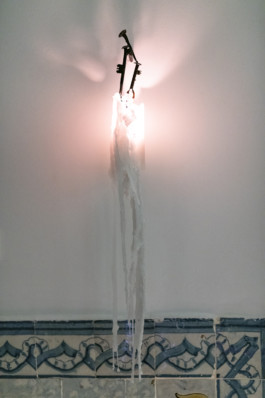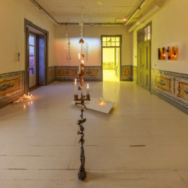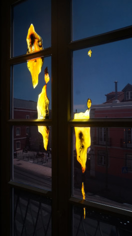 Pendant sa résidence à La Junqueira Artist Residency, Marion Flament a étudié le lien entre les lumières de Lisbonne et leur impact sur l’architecture. À travers la lumière, elle révèle les histoires de la ville et la sédimentation des couches de l’histoire. La première visite de Marion à Lisbonne fut l’église de São Domingos. L’édifice totalement carbonisé, portant les stigmates des catastrophes, fascina l’artiste par son magnétisme et son contraste la ville-reflet. Le feu qui détruit les bâtiments apporte une liquidité visuelle aux restes de l’architecture. La suie, les matériaux qui coulent et suintent, en donnent une preuve physique, dans un mouvement figé de l’évènement. Le temps coule par le feu. Marion invite les visiteurs à pénétrer dans l’obscurité pour parler de la lumière : “ Le noir nous fait voir en pointillé, en focus, dans la concentration et la vigilance. Dans la nuit tous les objets sont séparés d’une abyme ». Puis par une salle du jour - baignée de lumière, liante. Cet espace est inspiré par la brillance de la ville, son éblouissement et ses reflets produits par l’architecture. Les oeuvres que l’on y découvre impriment son l’histoire à travers une collection d’objets en acier, cristallisés dans le verre.
