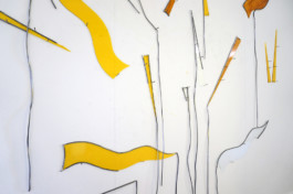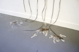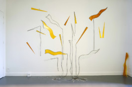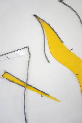 Installation présentée pour l’exposition de fin de résidence éponyme au Site Saint Sauveur en Vendée. Cette pièce est le point final de l’exposition : le motif des rayons solaires est éclaté, le plomb du vitrail s’ouvre et fond sur le sol. L’ouvrage fige le mouvement entrain de la construction ou de la déconstruction. Un soleil qui fond sous sa propre chaleur.